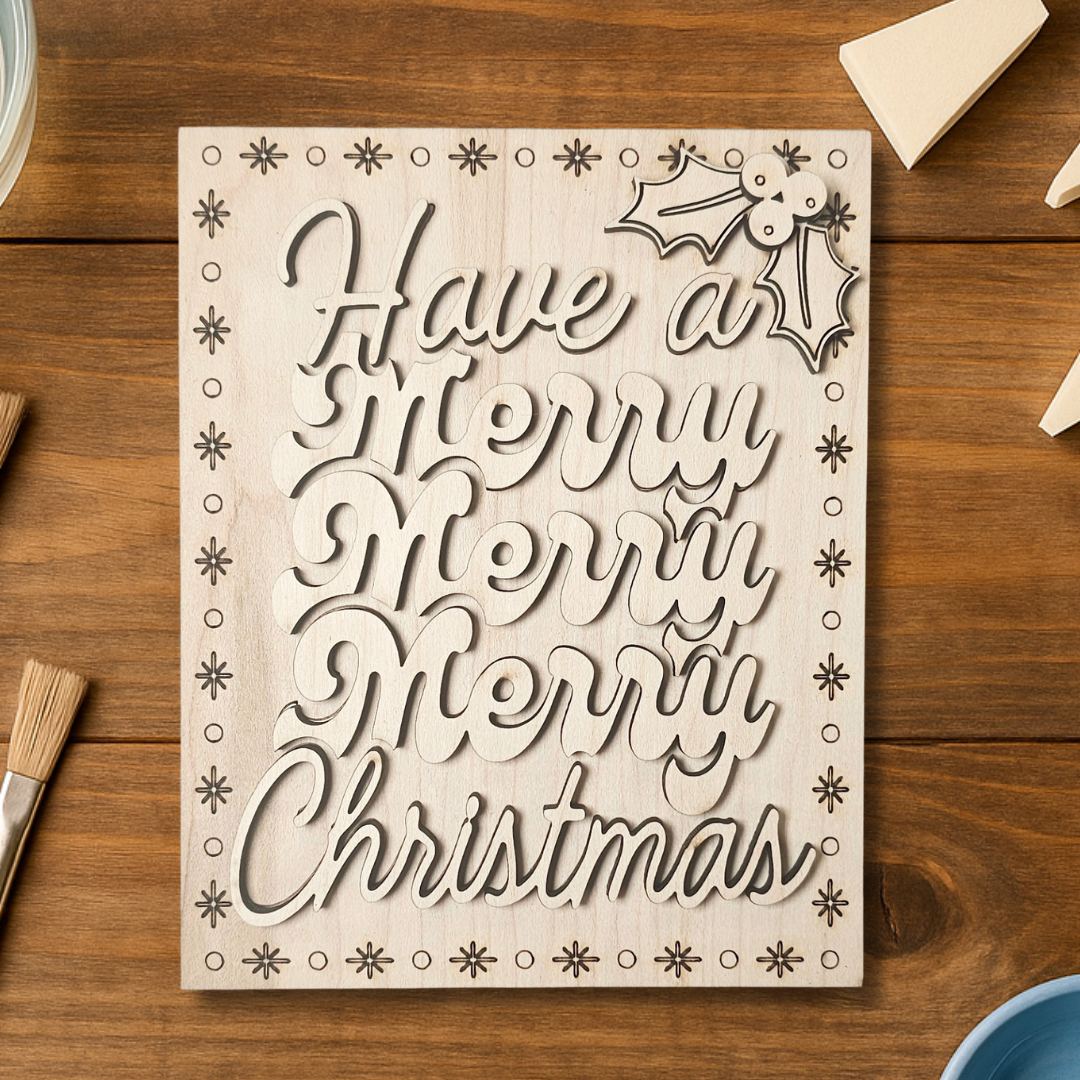 This comes unpainted, unfinished wood with all the wooden cut-outs to paint and assemble at home!